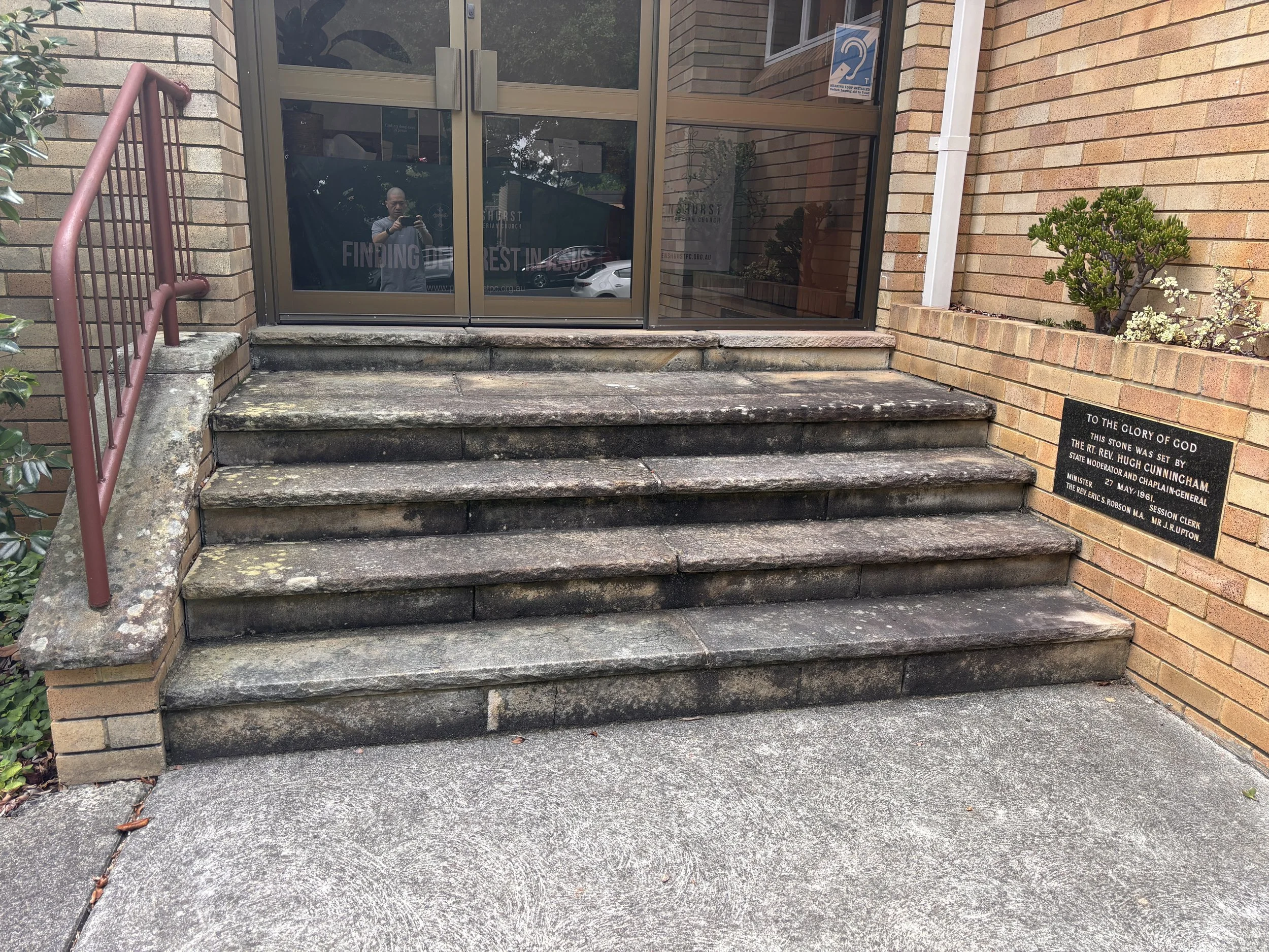 Pressure wash stairs, walkways